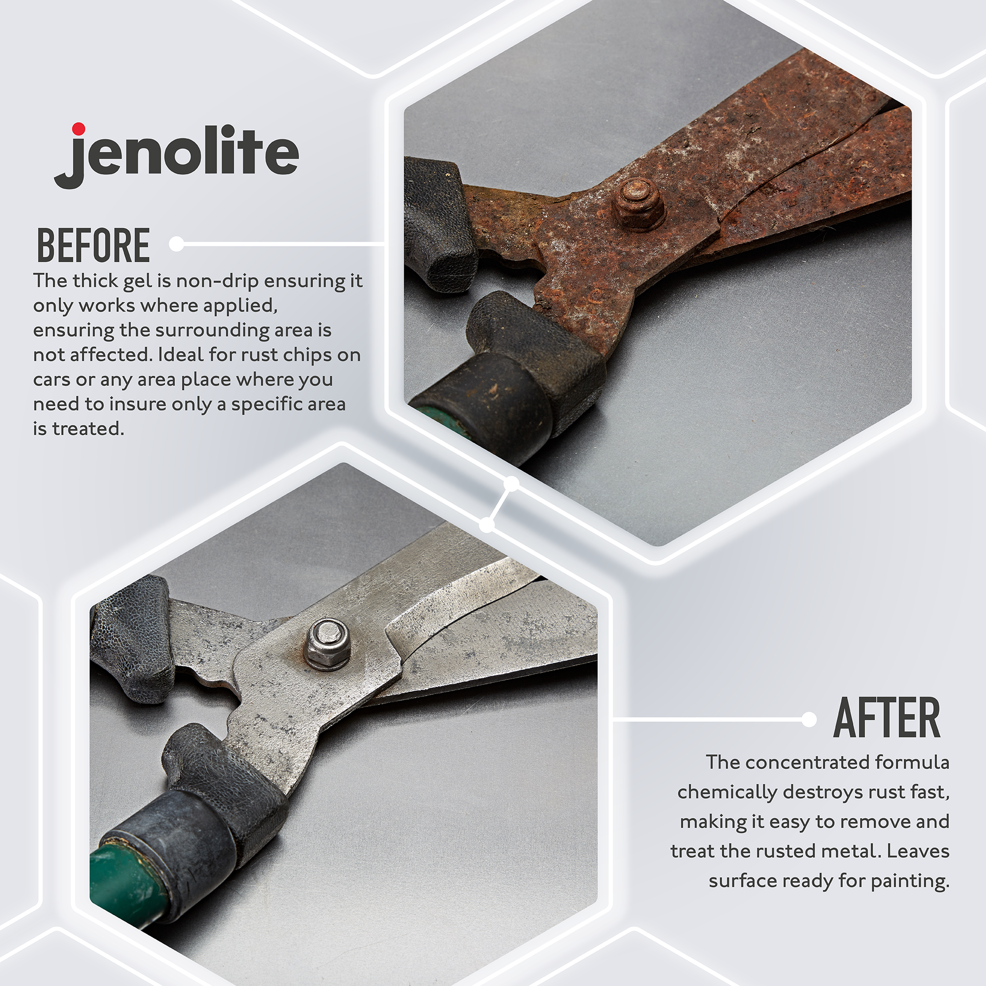 This gel will react with the rust, and work to remove it. Keep brushing the gel into the rust until it has turned into a dark grey colour, and then leave it to react for half an hour, before rubbing both the gel and the rust away in one go using a clean, lint-free cloth.